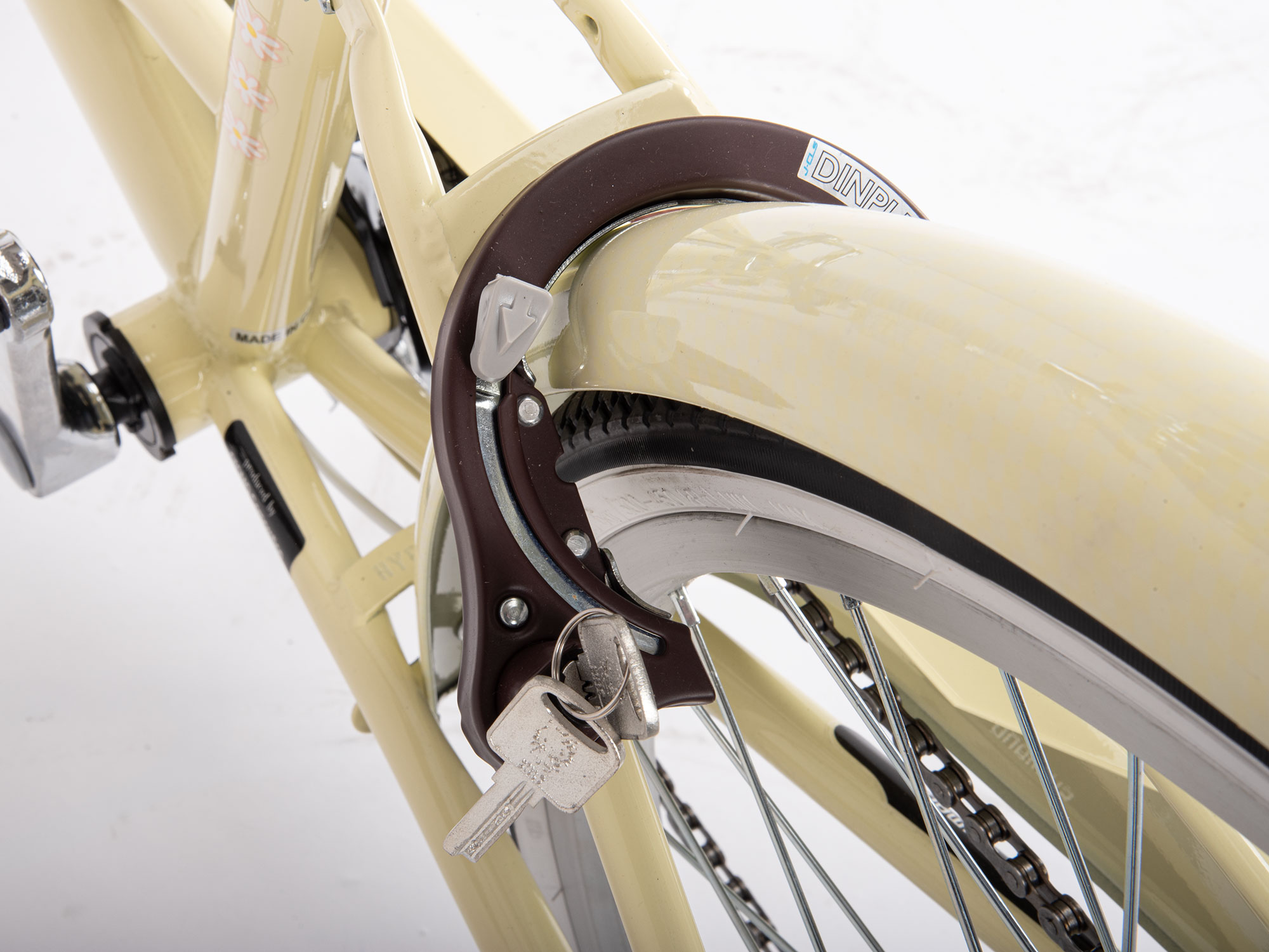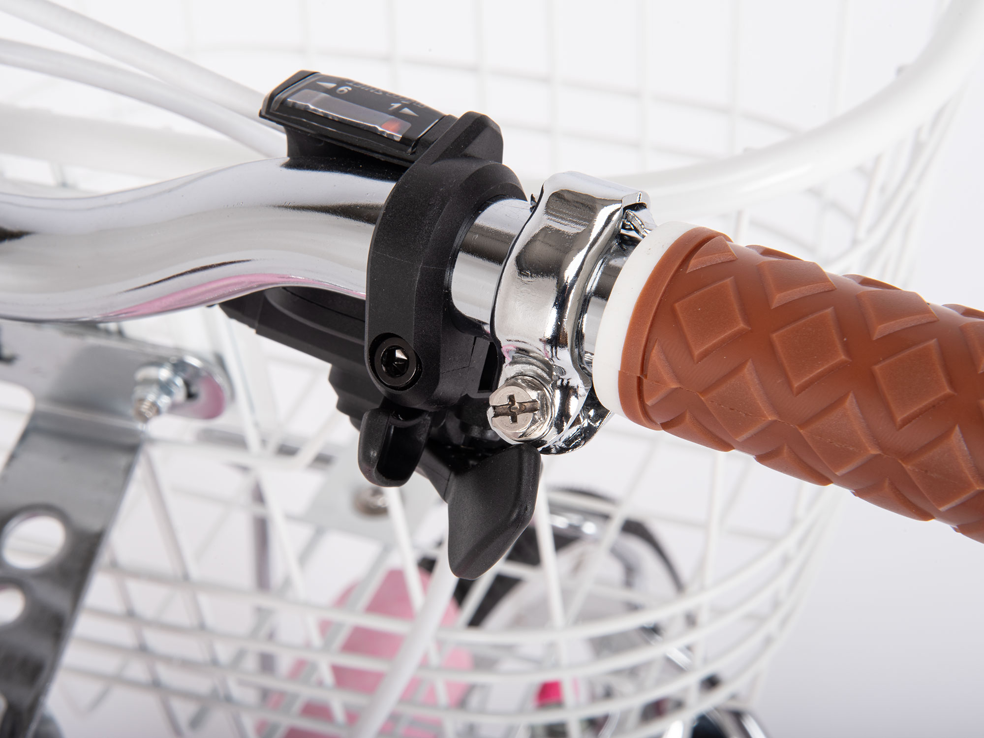 フロントワイヤーバスケット、外装6段変速、サークルロック、ダイナモライト付きです。