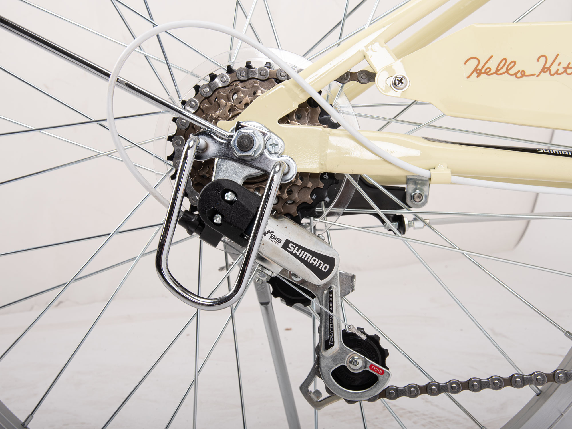 みんな大好きハローキティのジュニアシティ自転車です。カラーはクラシックグリーンとアイボリー。
