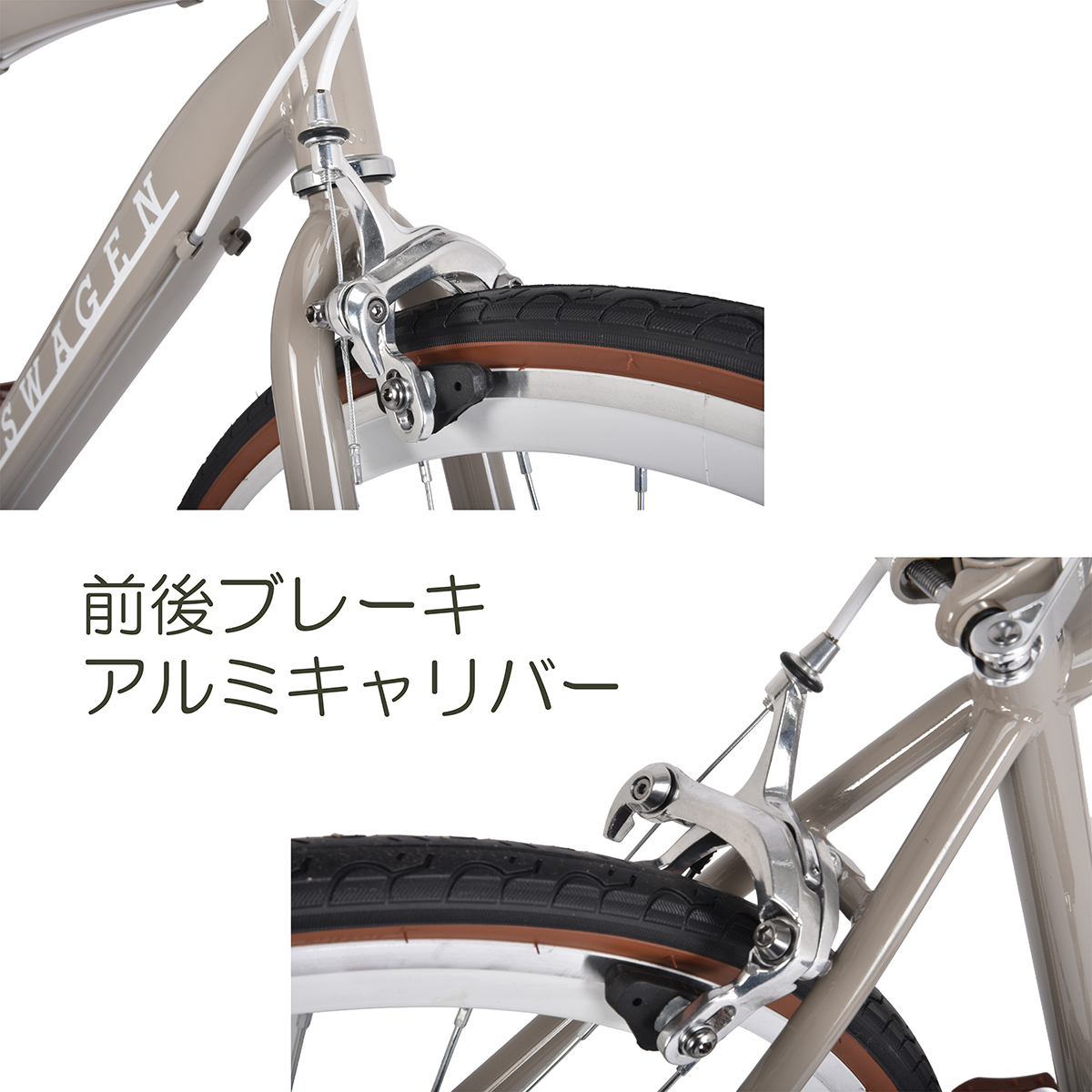 シティサイクルよりもおしゃれに可愛く乗車することが可能なフォルクスワーゲンブランドのクロスバイク。