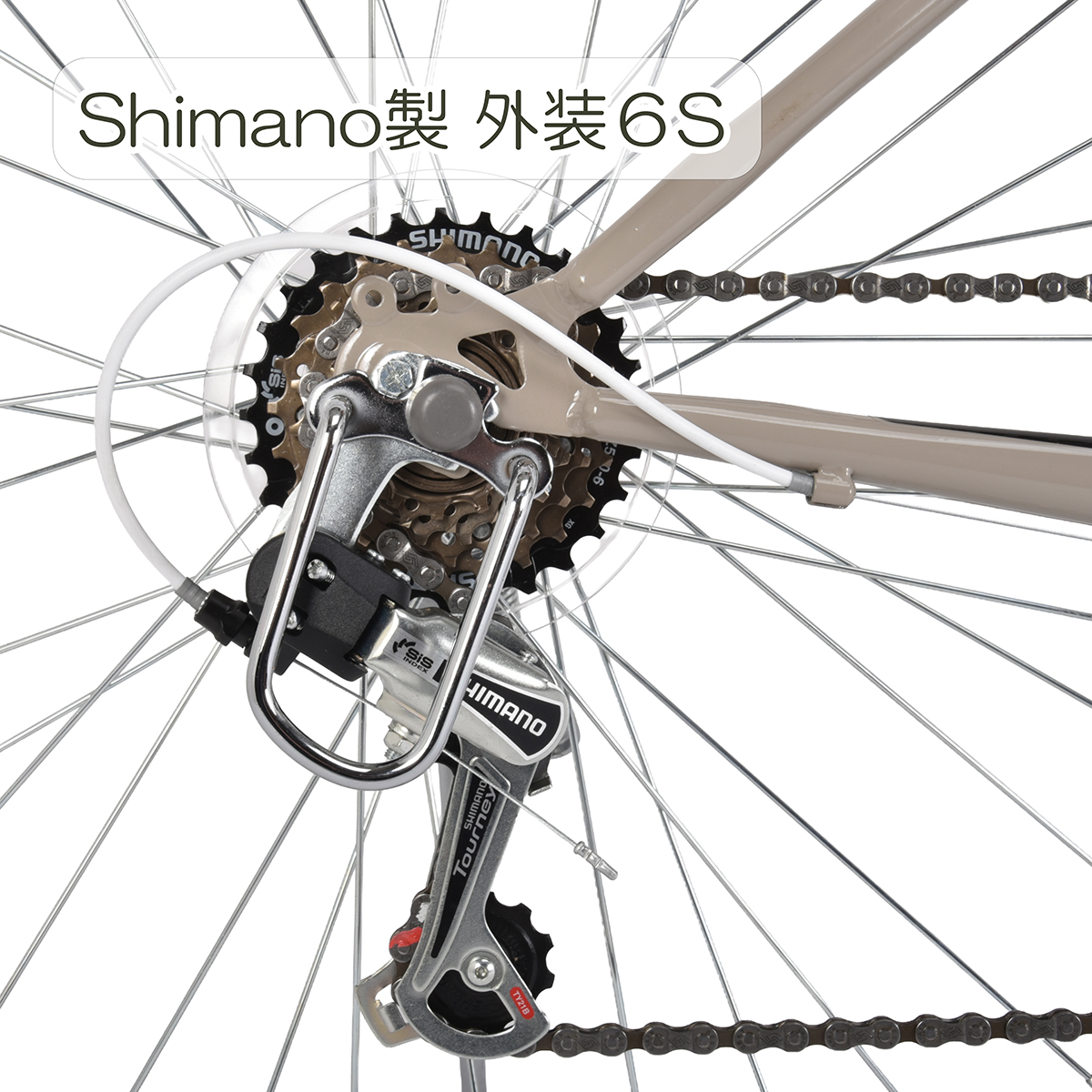シマノ6段変速機能により、街中でも快適な走行が可能です。