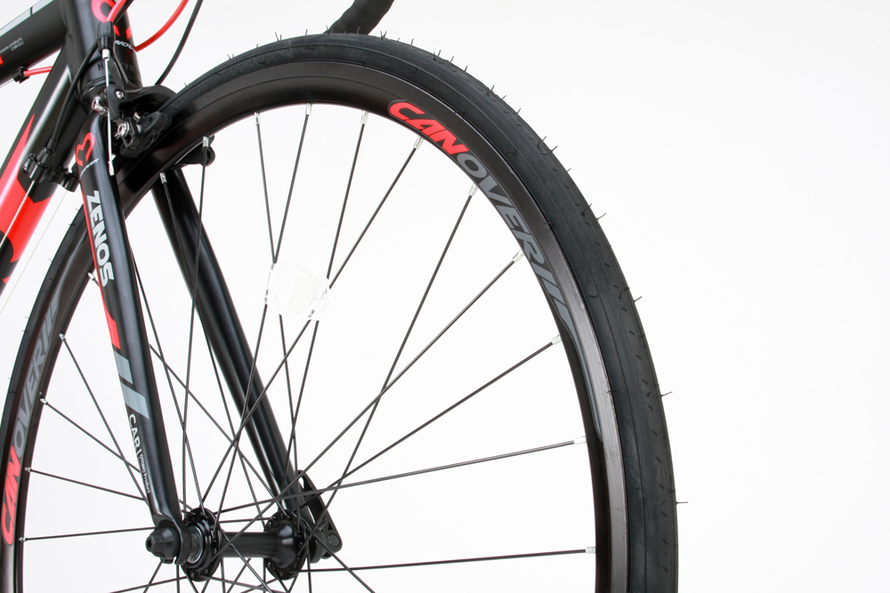ブレーキ面をCNC加工したオールブラックホイール。ブレーキ面にCNC加工を施す事により確実なブレーキングが行え様々な路面、天候に対応します。タイヤは700C×23Cを装着、速さを追求したスポーツ仕様です。