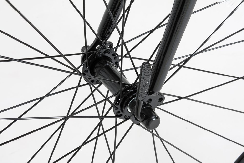 クイックリリースを組み込んだハブ。工具を使わずに、速やかに車輪を外すことができる機構。輪行などにも最適な機能。